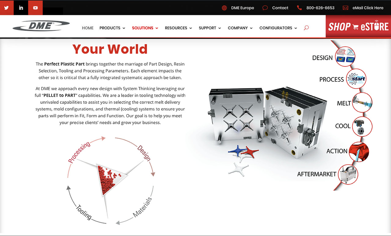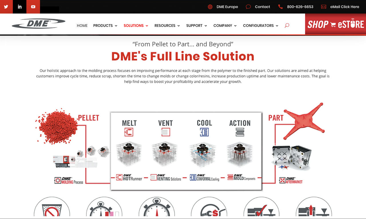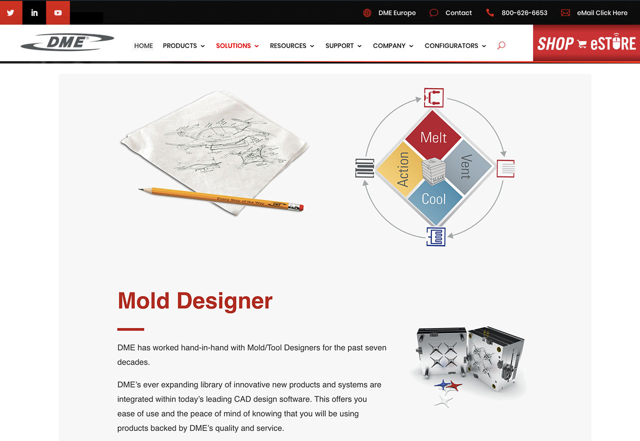When I joined DME, the company had a minimal digital presence. I worked closely with the team to build a comprehensive library of digital assets to support multi-channel engagement. This included everything from detailed engineering animations to expert-led “long form” videos / podcasts discussing the evolution of engineered components. These efforts significantly enhanced our ability to connect with the molding community and strengthened DME’s digital footprint.